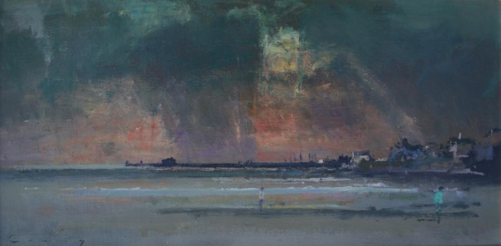 British Contemporary Artist: Fred Cuming Painting: Stormy Sky, Lyme Regis