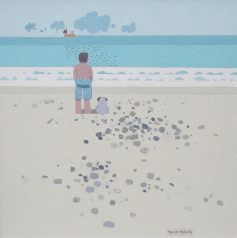 Sasha Harding uses a selective palette which reflects the gentle, natural colours of the seashore. She uses clean lines and clear images to depict coastal scenes. Harding's sense of humour sparkles irrepressibly through her paintings, but the lasting impression is one of great affection for her subject.