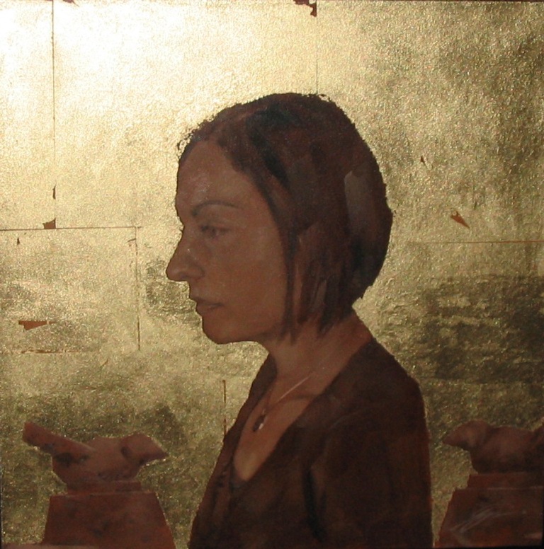 In 'Hidcote' we see a woman in profile, apparently deep in thought. As with other paintings by Simon Davis, the work suggests many questions.