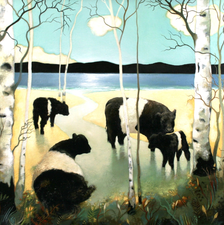 In the limited edition print 'Quiet Inlet' Lesley McLaren has captured the iconic images of Galloway cattle (Belties) against the magic of the Scottish landscape. There is a feeling of peace and tranquillity in the art print and it has an enduring quality.