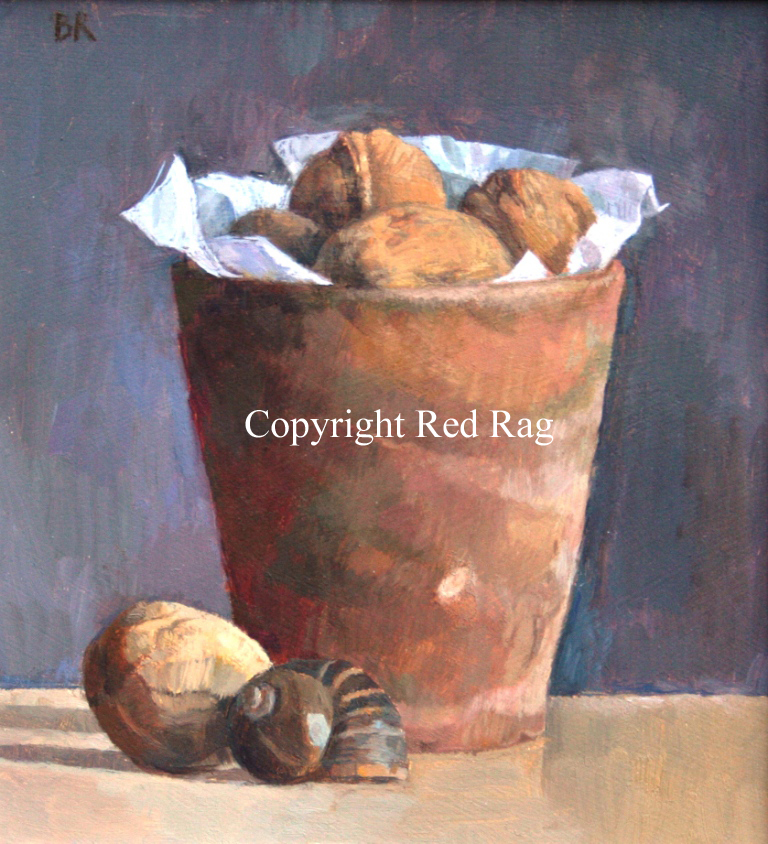 A beautifully controlled and perfectly composed contemporary study of a flowerpot full of walnuts. Barbara Read more