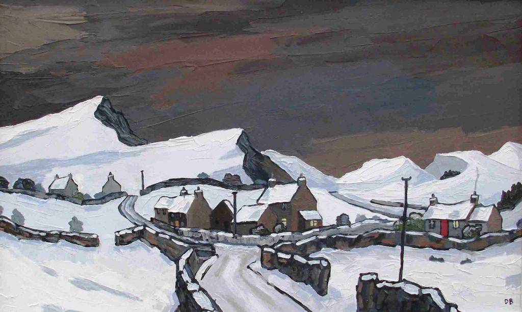 Painting: Welsh Village in Winter