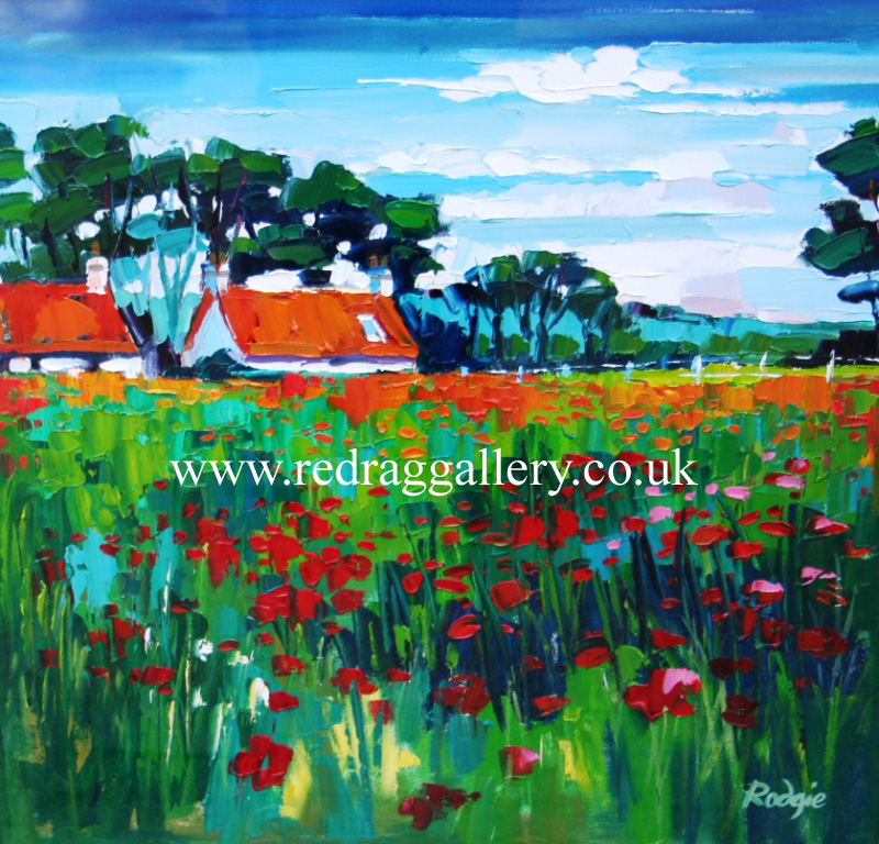 Scottish Contemporary Artist: Lynn Rodgie Painting: Aberlady Poppy Field No5