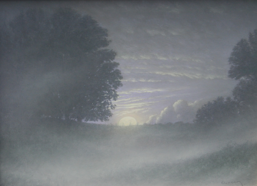 'The Great Moon' is a magical painting showing Outram's countryside and tall old oak trees bathed in silver moonlight. Mist and moonlight mingle and we get a sense of Steven Outram's respect for the beauty and power of nature in this contemporary oil painting.
